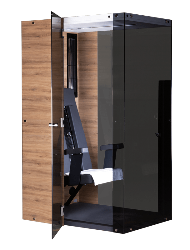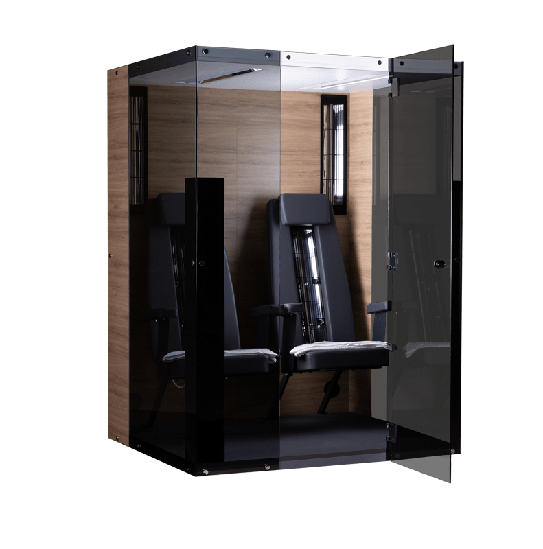 Die Infrarotkabinen der Comfort-Linie bieten eine angenehme Durchwärmungsanwendung im Sitzen. Sie bieten durch 15° geneigte Rückenlehnen eine angenehme Sitzposition, welche durch die höhenverstellbare Kopfstütze zusätzlich unterstützt wird. Die Infrarotkabinen der Comfort-Linie überzeugen durch ihr ansprechendes, modernes Design und ihren Komfort.